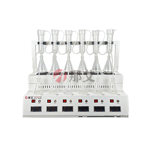 在實驗室中蒸餾操作是非常常見且又十分重要的前處理步驟,傳統(tǒng)的蒸餾設(shè)備,其加熱、蒸餾、冷凝、接收部分等各自獨立,操作繁瑣,效率較低;且由于缺乏蒸餾時間控制,常導(dǎo)致蒸餾失敗,影響工作效率,而且明火加熱極易爆瓶,操作危險,電熱套加熱效率又過低且不防水,針對這些需求那艾采用一體化設(shè)計理念,使用定制的遠(yuǎn)紅外陶瓷加熱裝置代替大功率電加熱器,同時采用溫控器來實現(xiàn)溫度控制和蒸餾時間控制、通過外接冷卻水自動降溫及回流裝置手段,實現(xiàn)了操作簡單、自動蒸餾、美觀實用、節(jié)能降耗等目的,同時極簡化設(shè)計實現(xiàn)了設(shè)備低成本,是實驗室蒸餾裝置的性價比之選。
