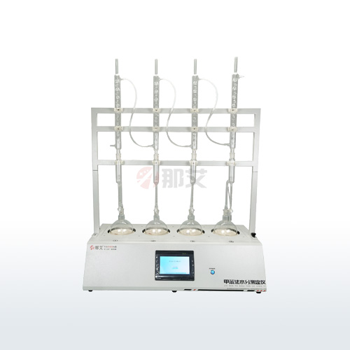 水分測定儀是《中國藥典》等藥品標(biāo)準(zhǔn)中的常規(guī)檢查項目,旨在控制藥品中的含水量,以防藥品霉變、水解、氧化等。利用水在甲苯中溶解度小,且甲苯的沸點(diǎn)較低的的特性,將甲苯和一定量的樣品放入裝置中,供試品種的水分和甲苯蒸汽一起蒸出,收集蒸餾液,冷卻后待水與甲苯分層后從水分測定管中讀出供試品種的含水量。共沸蒸餾法試樣中的水與甲苯經(jīng)蒸餾形成共沸二元混合物被蒸餾出來,水與甲苯的密度不同,在接收器中分層,根據(jù)蒸出水的體積,計算水分含量。
